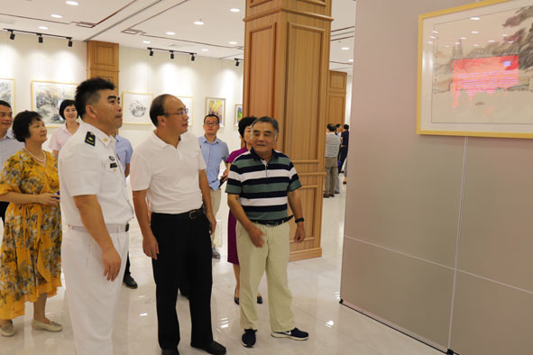 南平市人大常委會副主任、邵武市委書記何光松和張尚偉老師共同為“慶祝中華人民共和國成立70周年——邵武故鄉(xiāng)情·返鄉(xiāng)名家美術作品展”揭幕。(本文圖片由邵武市委統(tǒng)戰(zhàn)部提供)