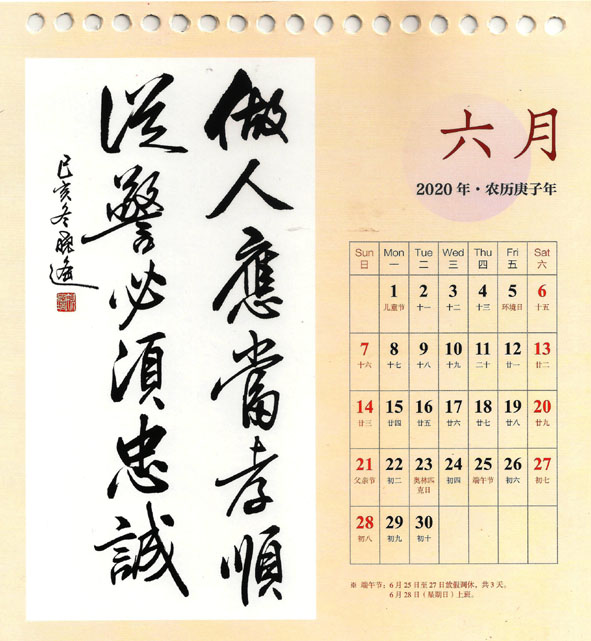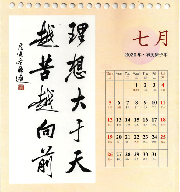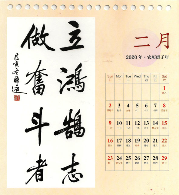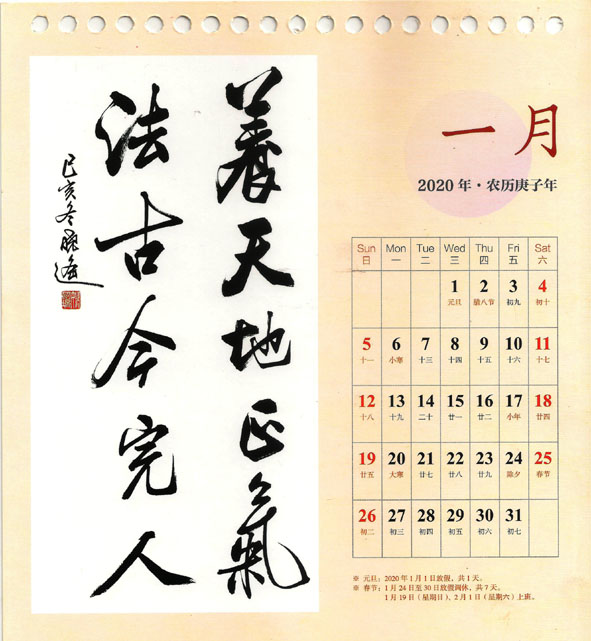 年末歲初,筆者收到了姚國培新出的2020年賀歲掛歷。這是一本設計新穎、制作精美、內容高雅、作品風格獨樹一幟的書法掛歷,用銅版紙印刷,每一幅作品都由姚國培自己創作、設計。