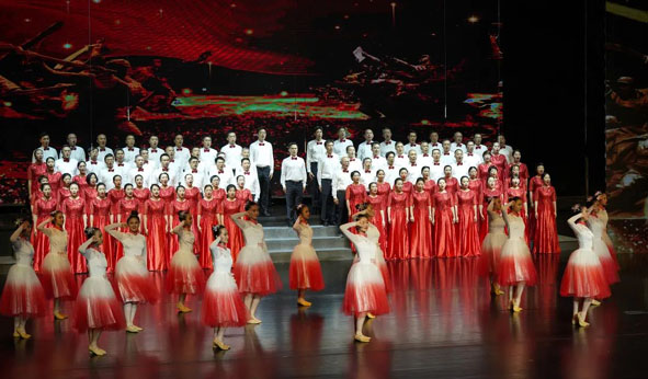 演出在全體演員和觀眾合唱《沒有共產黨就沒有新中國》中結束。整場活動緊扣“永遠跟黨走”這一主題,既是南平市人大系統獻禮中國共產黨成立100周年的重要活動,又是回顧黨的光輝歷程、謳歌黨的豐功偉績、弘揚新時代奮斗精神的一堂生動黨史課。通過舉辦文藝匯演活動,進一步營造全市人大系統圍繞中心、團結向上的濃厚氛圍,凝聚起自覺投身新南平建設的強大力量,引導全市各級人大代表、人大干部更加堅定永遠跟黨走的信念。