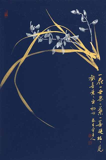 而率真,很好地表達了蘭的意味。觀大林的作品,不僅享受了他的寫蘭藝術,吮吸了滿紙?zhí)m氣,也欣賞到了他的書法藝術。