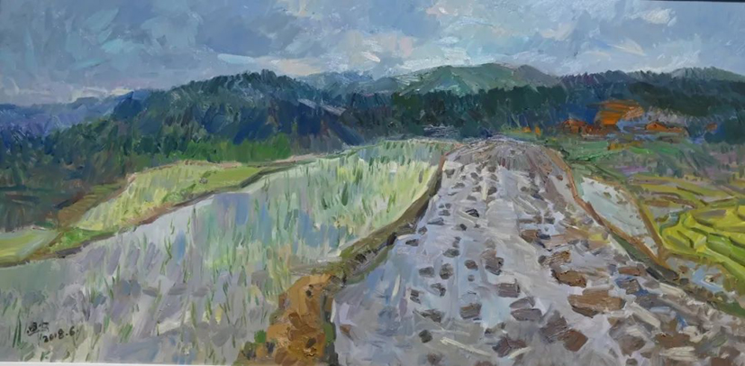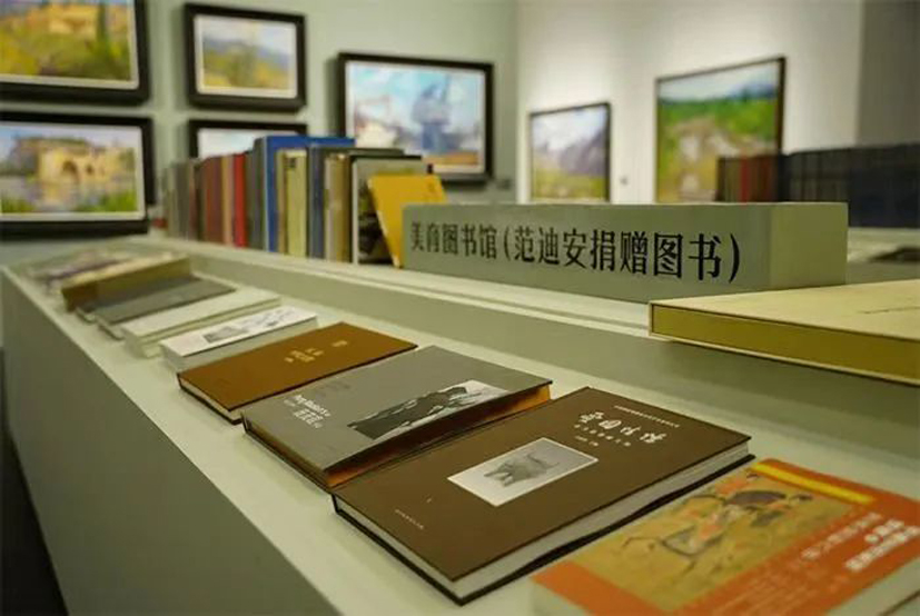 儀式現場,范迪安將自己創作的油畫、水彩作品第一批80余件及千余冊精品藝術圖書捐贈給今年9月即將正式投入使用的浦城美術館,同時舉辦題為“江山寄遠 夢筆抒懷”的部分捐贈作品展。