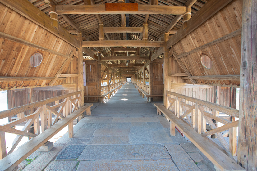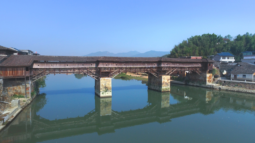 如今已666歲的鎮安橋,雖然歷經多次的水和火的洗禮,依然風姿卓越。要和小仙女比美,閩北廊橋很多,大多濃墨重彩,只有臨江鎮安橋不涂脂抹粉,仍然叫六宮粉黛無顏色而力壓群芳。福建省省級文物保護單位,大明朝洪武年間建設的純杉木斗拱橋鎮安橋,在清澈見底的溪流映襯下,美輪美奐。金秋十月,駐足鎮安橋,品桂花茶,吃桂花糕,觀賞丹桂樹紅遍的臨江溪兩岸美景,在涼爽的秋風里,沐浴著遠近飄過的陣陣桂清香,小七會后悔下嫁臨江章大嗎?后悔的應該是她的六個姐姐吧!