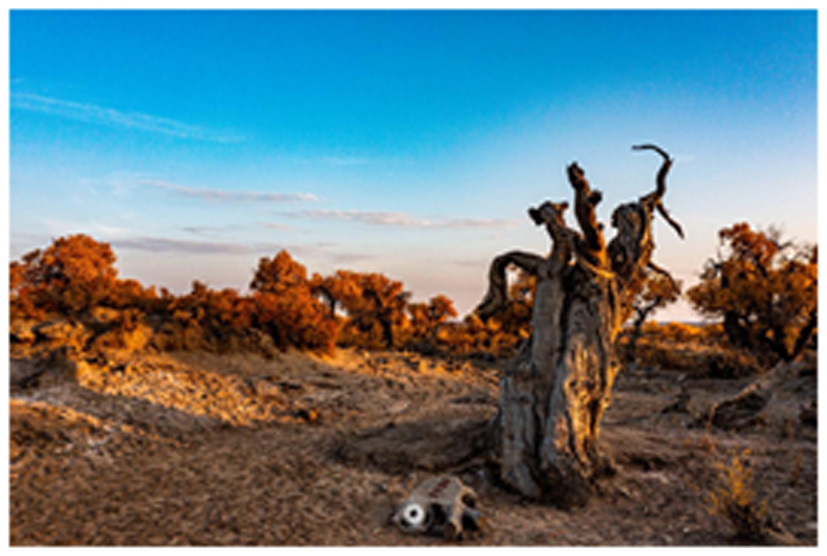 文章寫到這里就要結束了,但寫木壘怎么能不提到胡楊林呢?木壘河畔,6500年歷史的30平方千米的天然胡楊林,難道不是我們中華民族堅韌不拔、吃苦耐勞的真實寫照嗎?北庭古址,木壘河旁,沙鳴丘動,地老天荒。不見胡楊,不知大景之壯闊,不識胡楊,不知生命之輝煌。千年不死大漠魂,千古還留不倒身,千秋不死是龍根。中華神木,上者之巔,當屬胡楊,胡楊不死,木壘神奇,胡楊萬載,天佑中華!