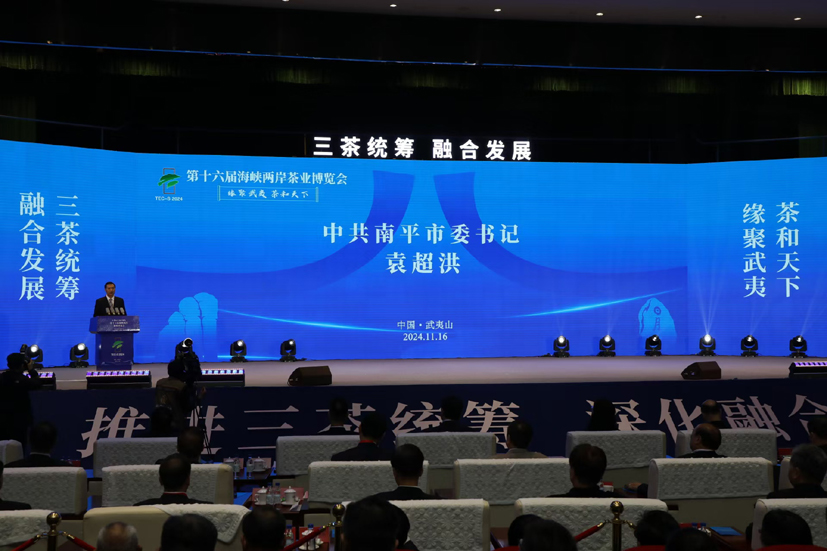 11月16,第十六屆海峽兩岸茶業(yè)博覽會開館式在武夷山茶旅小鎮(zhèn)會展中心舉行。