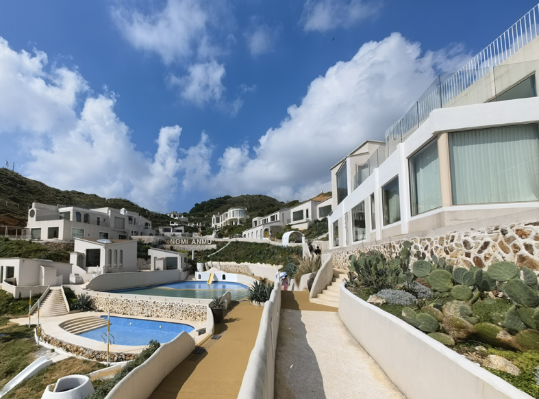 次日,我們慕名前往被《中國(guó)國(guó)家地理》評(píng)為“中國(guó)最美十大海島”之一的崳山島。登島恰逢漲潮,海浪裹挾著東海的咸濕,一遍遍拍擊著礁石,卷起漫天飛濺的白浪,那澎湃的聲響與清冽的海風(fēng)一同撲面而來(lái),滌蕩了旅途的塵埃。鎮(zhèn)黨委書記張里冰高興地說(shuō):“你們來(lái)的正是時(shí)候,環(huán)島公路剛建好。”在李老師的精心安排下,我們驅(qū)車前往一處名叫NOMI ANMD(崳山島的閩南語(yǔ))的民宿區(qū)。下車后,沿著一條彩色柏油小徑向海邊緩步而行,眼前的景致仿佛穿越到異國(guó)他鄉(xiāng):矗立在海邊的燈塔,輪廓簡(jiǎn)潔而挺拔,與加拿大溫哥華斯坦福公園海灣的燈塔相似;路兩側(cè)錯(cuò)落有致的白色建筑群,帶有地中海風(fēng)格的簡(jiǎn)約靈動(dòng),恍惚間讓人誤以為置身希臘圣托里尼的藍(lán)白小鎮(zhèn);沿途不時(shí)邂逅不同膚色、身著各式服飾的外籍游客,更增添了幾分國(guó)際風(fēng)情。行至海邊一家臨海小館歇腳,房東熱情地為我們泡上一壺福鼎白茶。我倚在窗邊,一邊啜飲著茶湯里的蘭香回甘,一邊靜賞窗外的碧海藍(lán)天,耳畔是海浪的輕吟,十分愜意。
