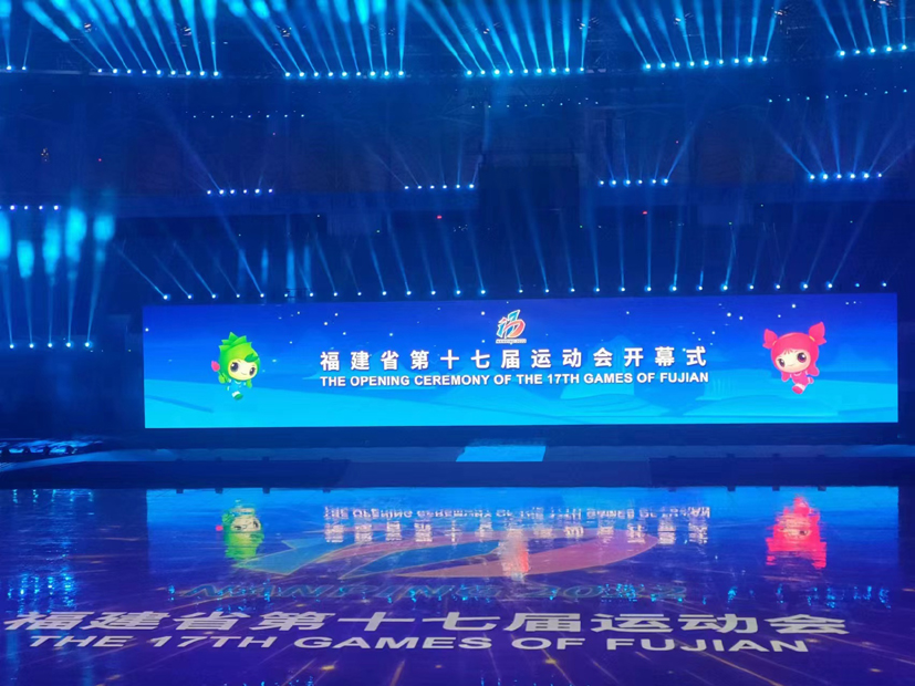 南平市體育中心燈光璀璨、流光溢彩,20時,開幕式正式開始。伴隨著雄壯的中華人民共和國國歌和省運會會歌,中華人民共和國國旗和省運會會旗、第十七屆省運會會旗先后在會場冉冉升起。