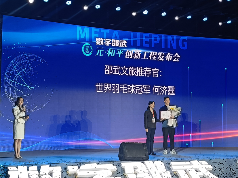 邵武市人民政府市長郭緋紅向邵武籍世界羽毛球冠軍何濟霆頒發(fā)榮譽證書,邀請他擔(dān)任邵武文旅推薦官。