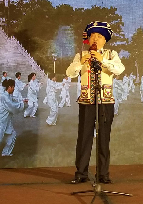 多才多藝的福州邵武商會榮譽會長發歌在表演